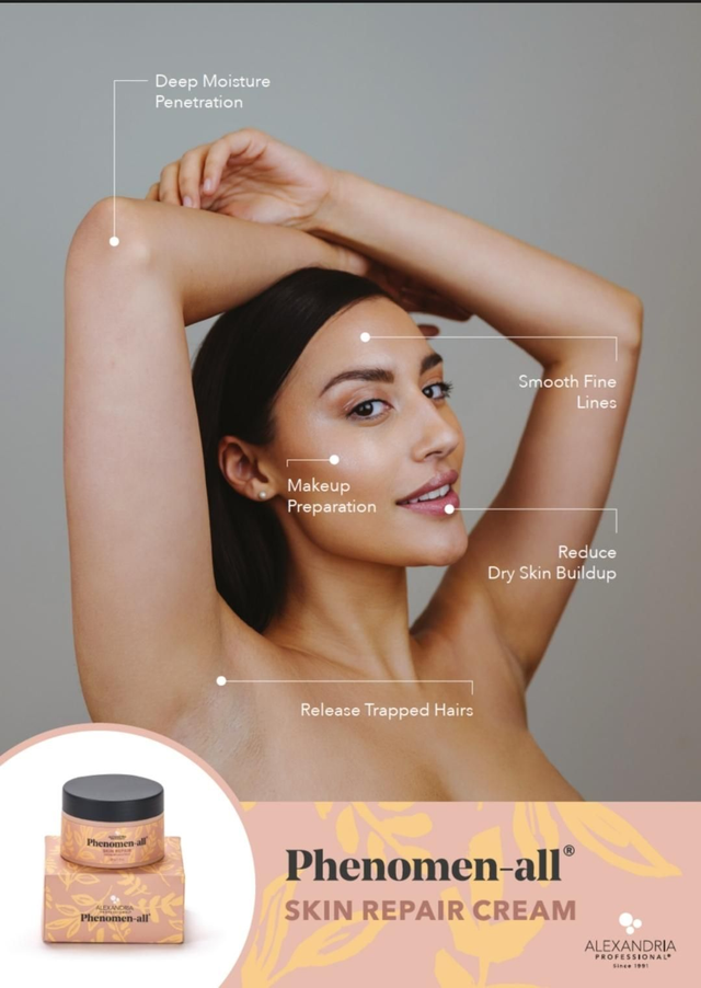 Phenomen-all ehkäisee karvojen sisäänkasvua ja auttaa sisäänkasvaneidenkarvojen hoidossa esim. bikini-alueella. Phenomen-all voiteen käyttö pehmentää ja notkistaa ihoa ja siten kuiva ihon pinta ei vastusta karvan poistoa. Vapauttaa ihosta sisäänkasvaneet karvat ja auttaa ihoa parantumaan ilman arpeutumista.